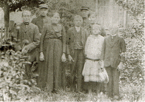 Peter Mencke und Frau Dorothea geb. Kaiser mit ihren Kindern und 2 Kriegsgefangenen