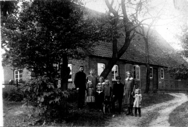 Personen unten von links: Agnes, Willi, Else Sekerdiek, Werner Bramekamp, Dora Kludas, Erika Sekerdiek (heute Rieckmann); obere Reihe von links: die Eltern Wilhelm und Dora Sekerdiek, Magda Höft