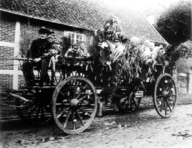 Erntefest auf dem Weg nach Itzenbüttel v. links: Wilhelm Mencke, Horst Mencke, Erich Mencke, Emma Mencke, Karl Mencke, Dora Schierhorn, Johanna Mencke