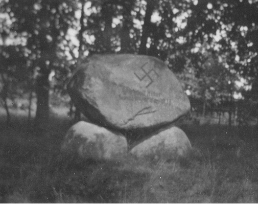 Der Stein wurde zum Kriegsende umgestürzt und liegt jetzt mit der Vorderseite auf dem Boden