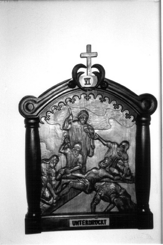 Relief aus dem Kreuzweg in der Friedhofskapelle: VI. Unterdrückt