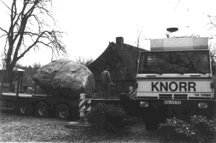 Aufstellen des Steins beim Dorfladen