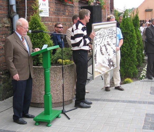 Asendorfer Delegation bei der 800-Jahrfeier von Trzciel vor dem Rathaus